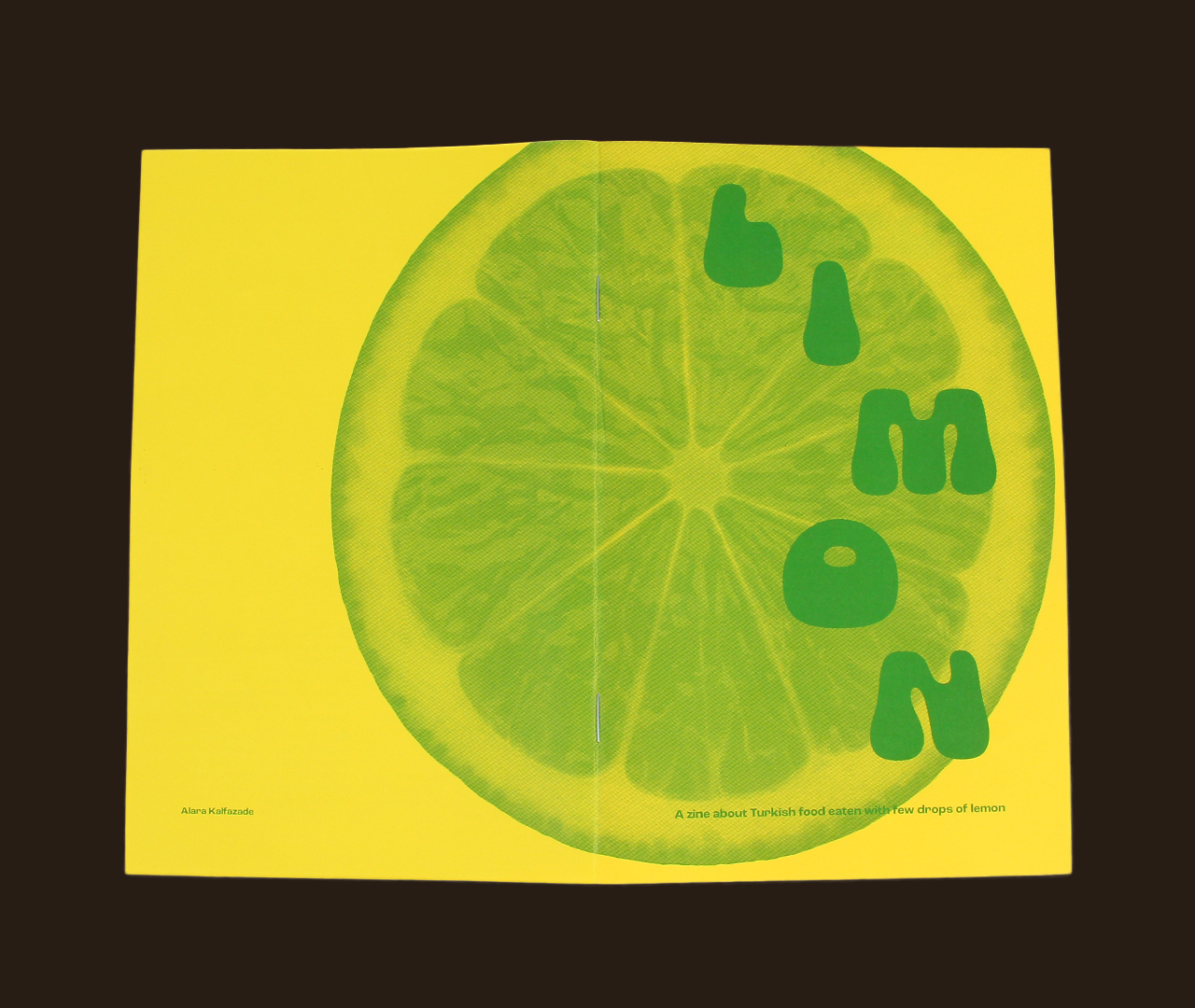 Limon, the Turkish word for lemon, is a zine with recipes of Turkish food that are always eaten with a few drops of lemon. This small zine celebrates the vibrant flavors and rich history of Turkish cuisine. It includes the importance, recipes, and pictures of each of the most popular dishes among the locals of Turkey. I decided to create this zine to express the importance of lemon in Turkish cuisine and the prevalence of the act of squeezing lemon juice onto food.